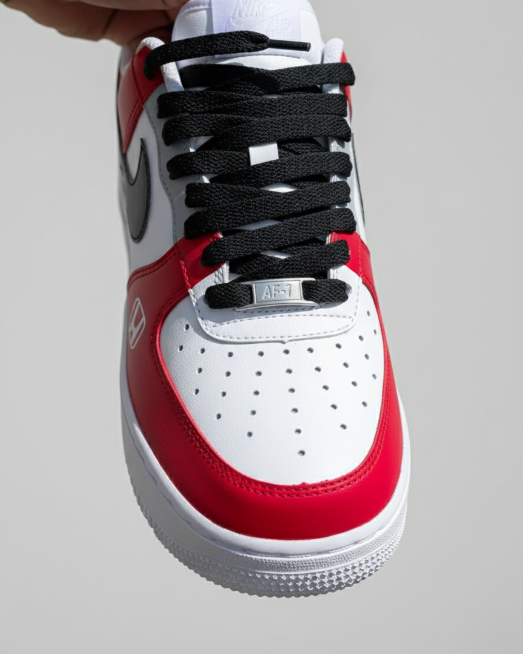This Custom Nike Air Force pays tribute to one of motorsport’s most iconic teams with a striking red-and-white color scheme, sleek lines, and racing-inspired graphics. From the Marlboro branding accents to detailed racing stripes, every element echoes the thrill and intensity of the track. Hand-painted with USA Angelus Direct Leather Paints, each pair showcases vivid color, lasting durability, and meticulous craftsmanship.