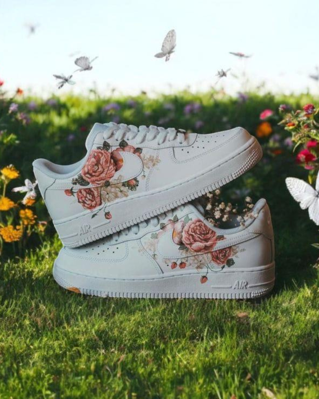 The Custom Nike Air Force Rose Garden features hand-painted floral art, blending elegance, creativity, and everyday comfort.